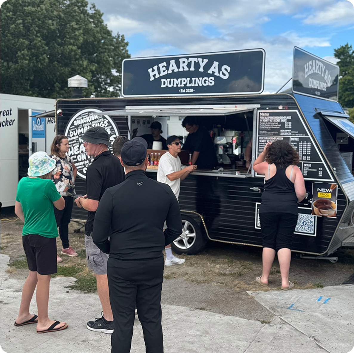 What started as a humble street stall in 2019 has grown into a local legend—one delicious dumpling at a time. Rooted in tradition and crafted with love, our dumplings bring people together, just like a warm meal shared with family. With everyone’s support, we were able to bring the flavors loved by the community to other parts of Aoteroa—from Raglan to New Plymouth.